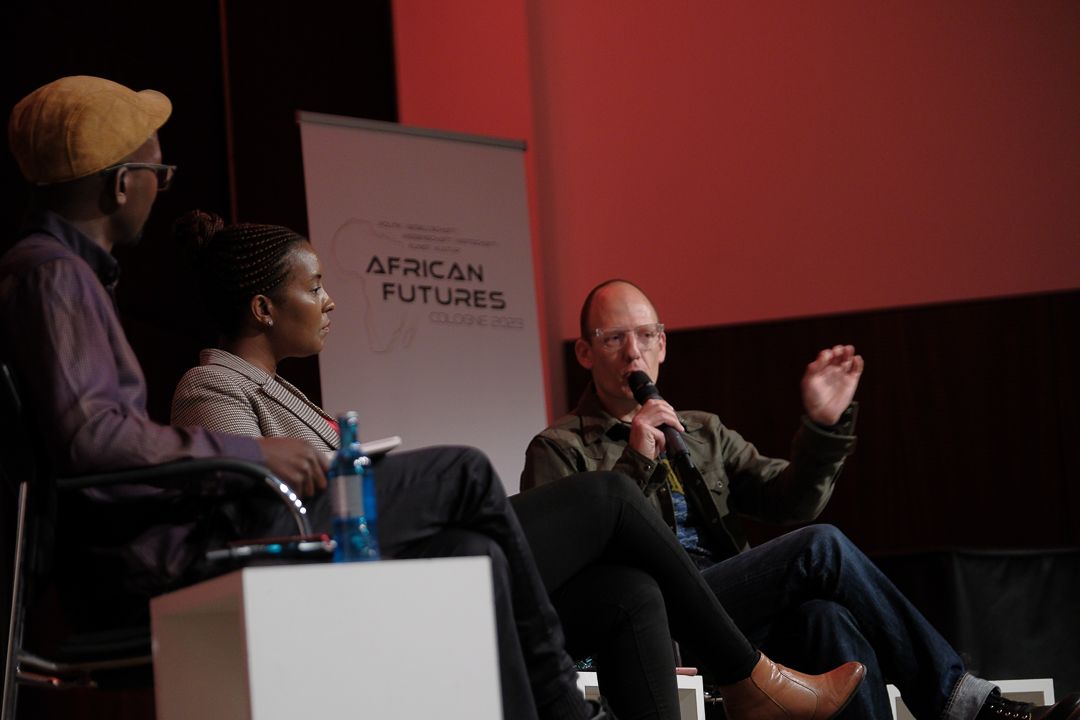 Mit Keith Hamaimbo und Elisabeth Kaneza bei den "African Futures" in Köln, 2023